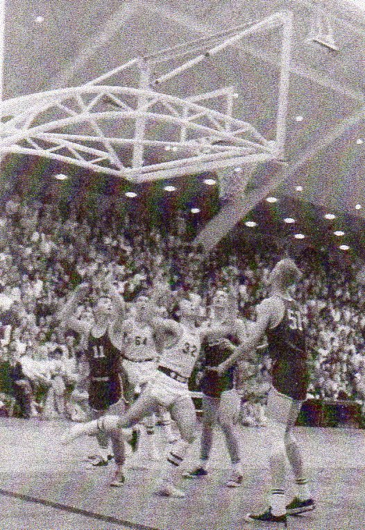 Crawford defeated the Cardinals, 55-49, but its lead was only 46-45 with 4:13 remaining in the game. At that point the lights dimmed at Peterson Gym. The approximate 3,000 persons in attendance stirred restlessly through a 32-minute delay.