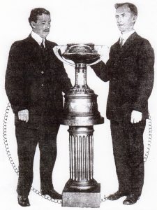 Representatives of the Pomona Rotary 20-30 Club presented the Pacific Coast League Hollywood Stars’ perpetual trophy, which would stay with the Hilltoppers, acknowledgement of their winning the Pomona tournament three times.