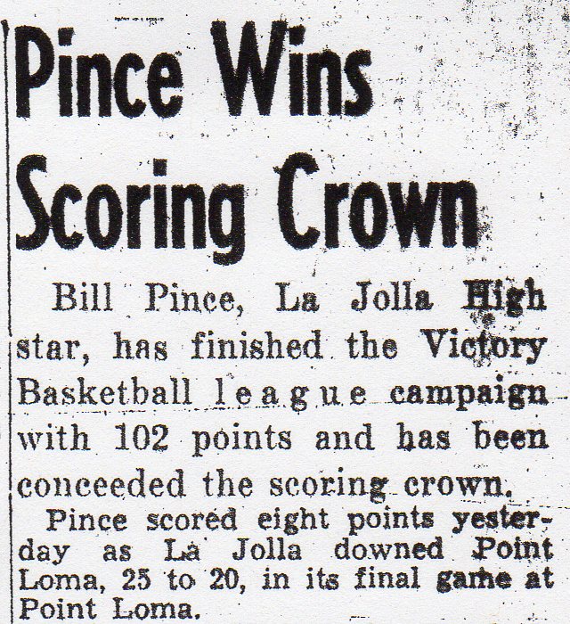 Pince’s season was complete as San Diego and Hoover prepared for a late-season nonleague encounter. Pince was scheduled to compete against a representative from every Victory League team in a free-throw contest at halftime of the Cardinals-Cavers contest.