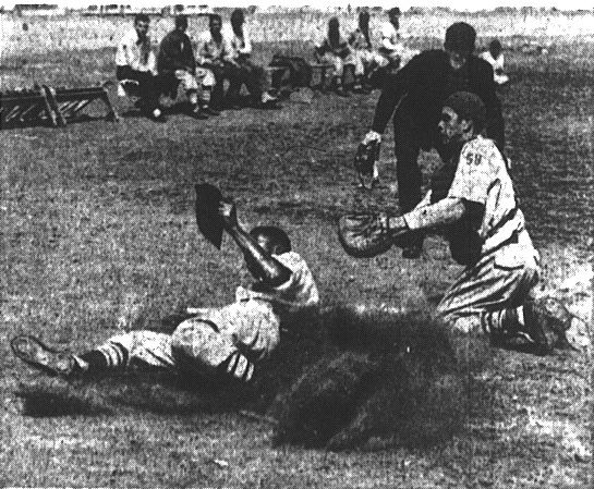 Vikings pitcher Bud Releya set down the Pointers on eight hits and contributed a home run, matched and then some by catcher Charlie Woy’s two home runs.