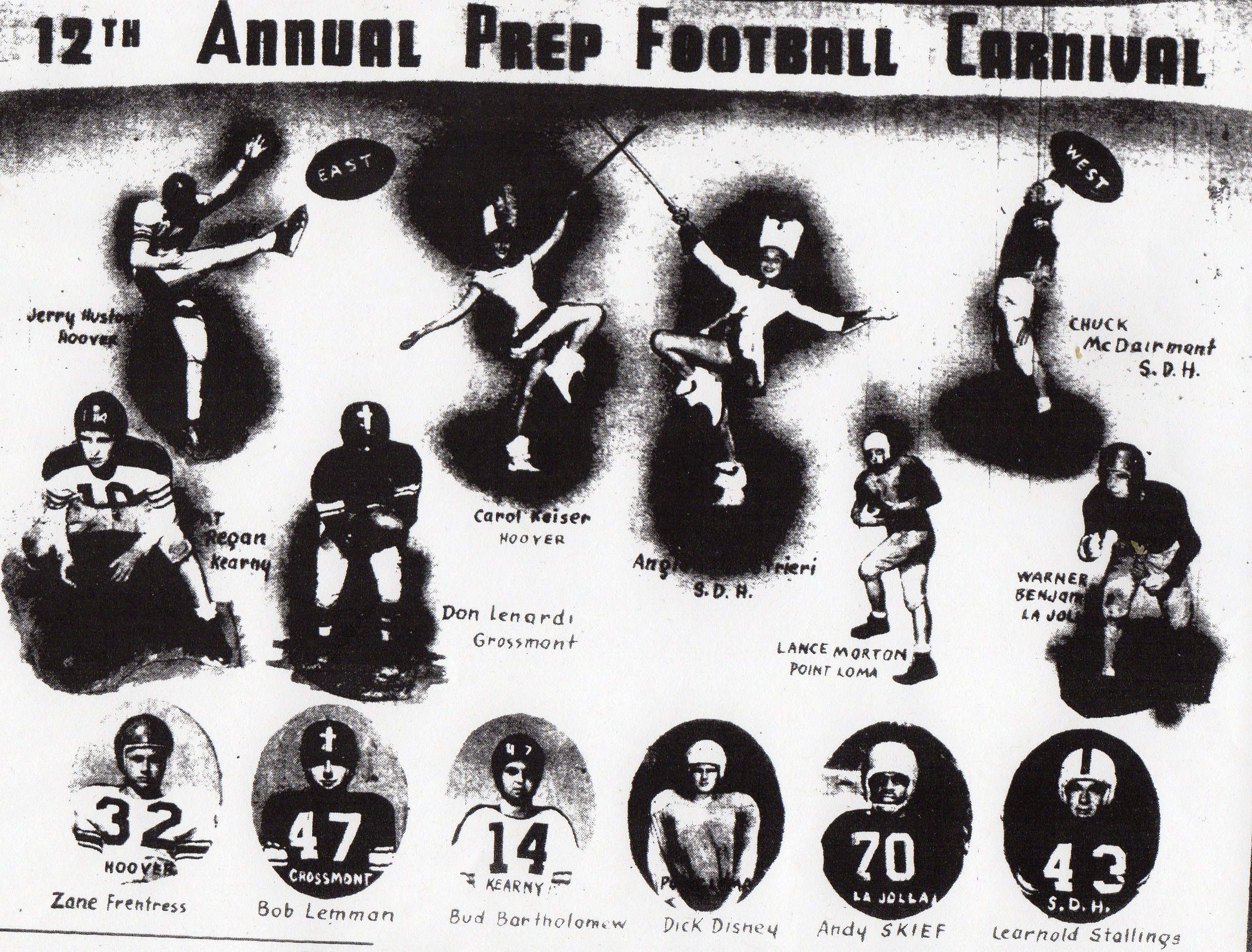The Breitbard Athletic Foundation announced that a “San Diego Board of Football” had been formed. Writers Gene Earl and John McDonald of The Union;Â Jerry Brucker and Tom Stansberry of the Tribune, and F.W. (Bill) Whitney of the Breitbard Foundation would select the all-City and all-Metropolitan League teams.