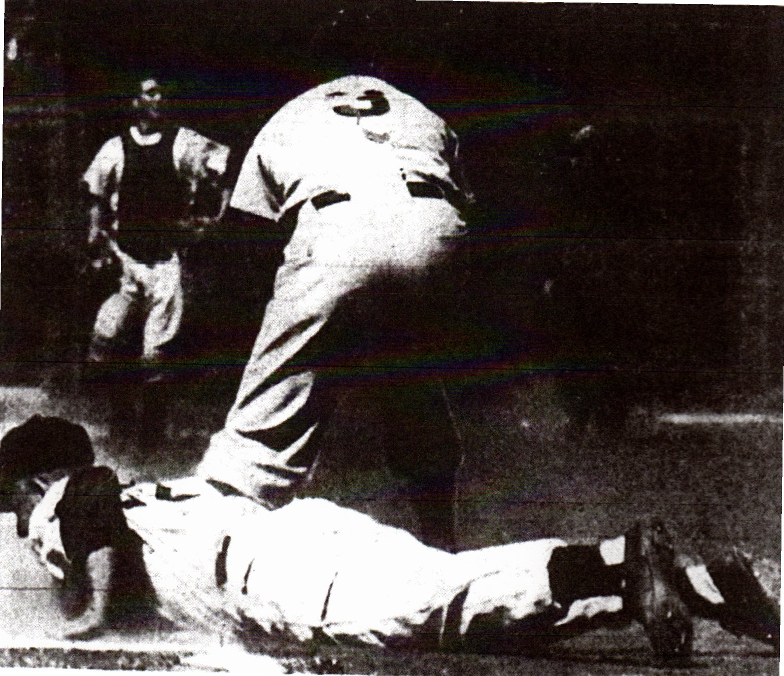 Montgomery circled the bases after the ball dropped safely and Cavers pitcher Dick Floberg threw all the way to the outfield fence while trying to retire Montgomery at second base after a cutoff of the throw from the outfield.