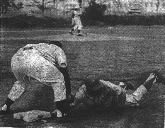 Three runs scored for the Sentinels when outfielders Henry Gardner and Iva Tucker couldn’t decide who should take Jerry Montgomery’s fly ball with two runners on and two out.