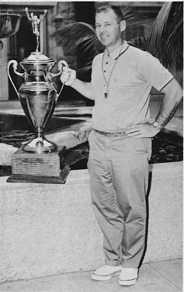 Maley’s 12-season career record was 97-19-3 (.828)…Murphy averaged 9.6 yards a carry and scored 21 touchdowns…McClendon averaged 9.3…Simon, who didn’t play enough to letter behind Ezell Singleton in 1958, overcame early-season jitters and passed for 15 touchdowns…San Diego’s defense was led by Oliver McKinney, Phil Cooper, Willie Bolton, Charlie Dykstra, and Tom Meshack…Larry Wohlford was a standout center…Hutchison got his chance to start in the playoffs after Emile Wright ran afoul of the law and was suspended…Charlie Popa was named to replace Maley as head coach the week after the Monrovia playoff…Maley moved on to vice principal and principal positions in the City Schools…Maley’s son, Dennis, was an all-Eastern League running back and a tough defender in 1964 and later played at the University of Arizona before signing a professional baseball contract…Giddings never was “back in this town someday” with a football team…he moved on to became head coach at Glendale Junior College and defeated San Diego J.C., which numbered several ex-Cavers, 7-6, in the opening game of the 1960 season….