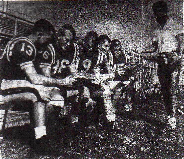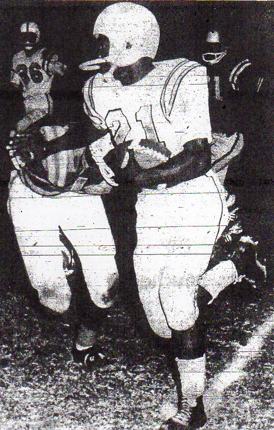 Passes by the Cavers’ Lou White resulted in carnival scoring plays of 88 yards to Thomas Phillips, 22 yards to David Ortman, and 68 yards to Eddie Frost.