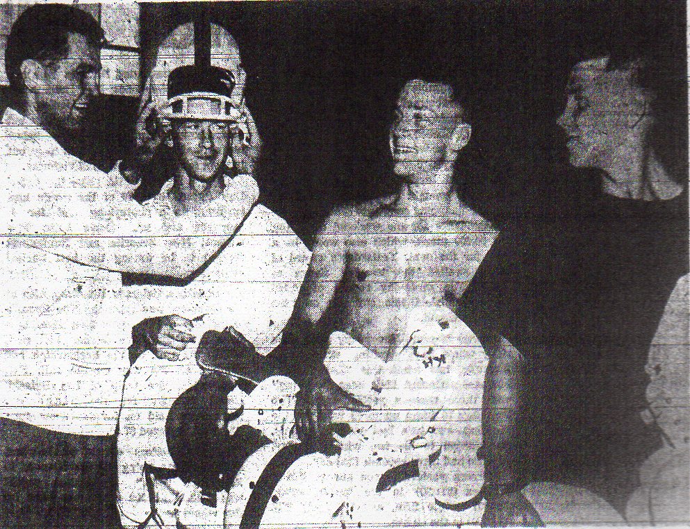 A practice injury left Crawford’s Jeff Greenleaf paralyzed from the waist down. To help incur Greenleaf’s hospital bills donations were sought and the Colts met Sweetwater in a Thanksgiving Day, postseason contest at Hoover.
