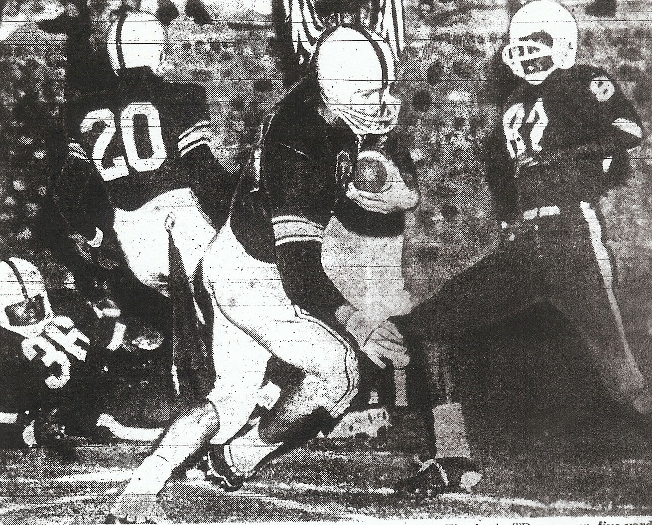I snuck in off the bench without the Coaches permission because I always wanted to play halfback. It was a good thing I scored or I might of been in some trouble.