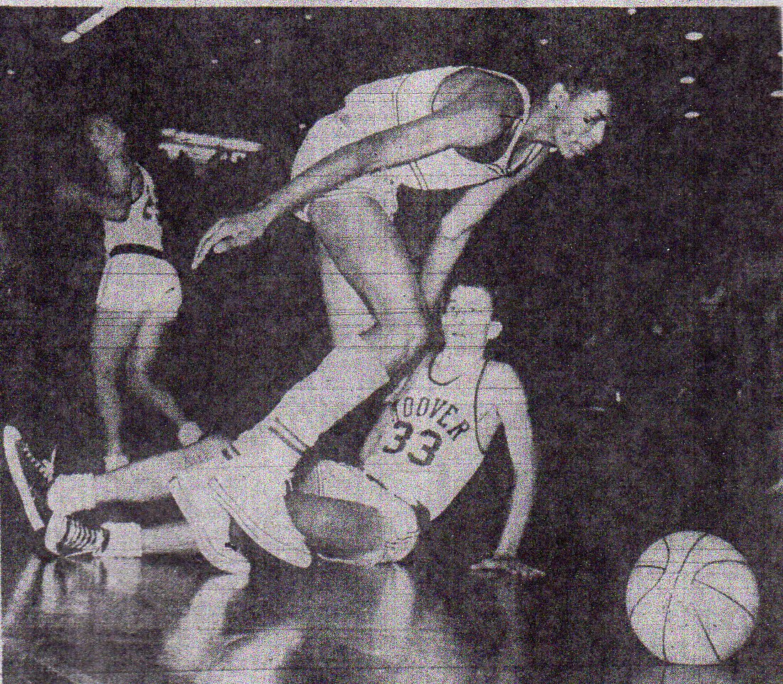 A sloppy, physical, 48-43 win at Lincoln (10-12) saw a Hoover player, Jim Surber, sustain the team’s first technical foul since 1956, although Lincoln was whistled for 25 fouls to the Cardinals’ 12.