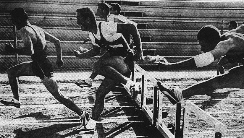 Lincoln’s Del Cooper ran a heat in the 120-yard high hurdles in :14.4 and Lou White of San Diego won the final in :14.5.