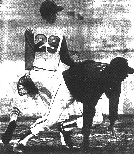 Dave Gregg singled, Ken Ohlendorf sacrificed Gregg to second, then walks to John Pickrel and Roger Gregg loaded the bases in the sixth inning.