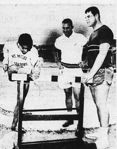 –Terry Rogers of Hilltop turned in a 1:54.4 880 and barely minutes later tried to double in the 440, finishing last. Sweetwater won the 880 relay in 1:33.4 and the meet, 59-54.