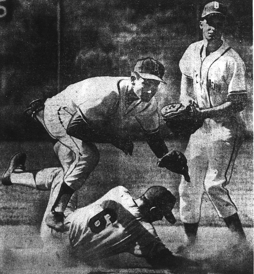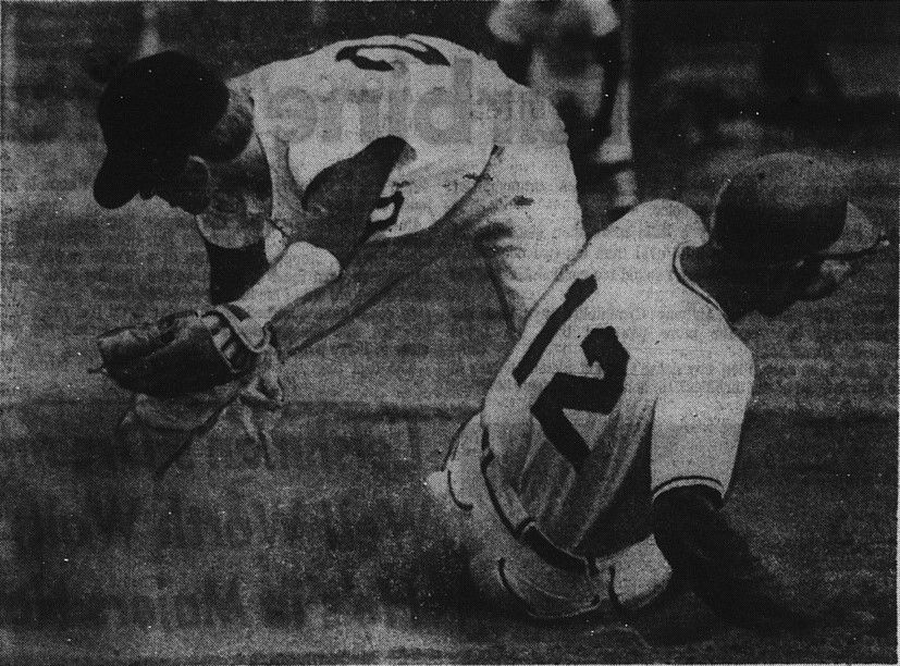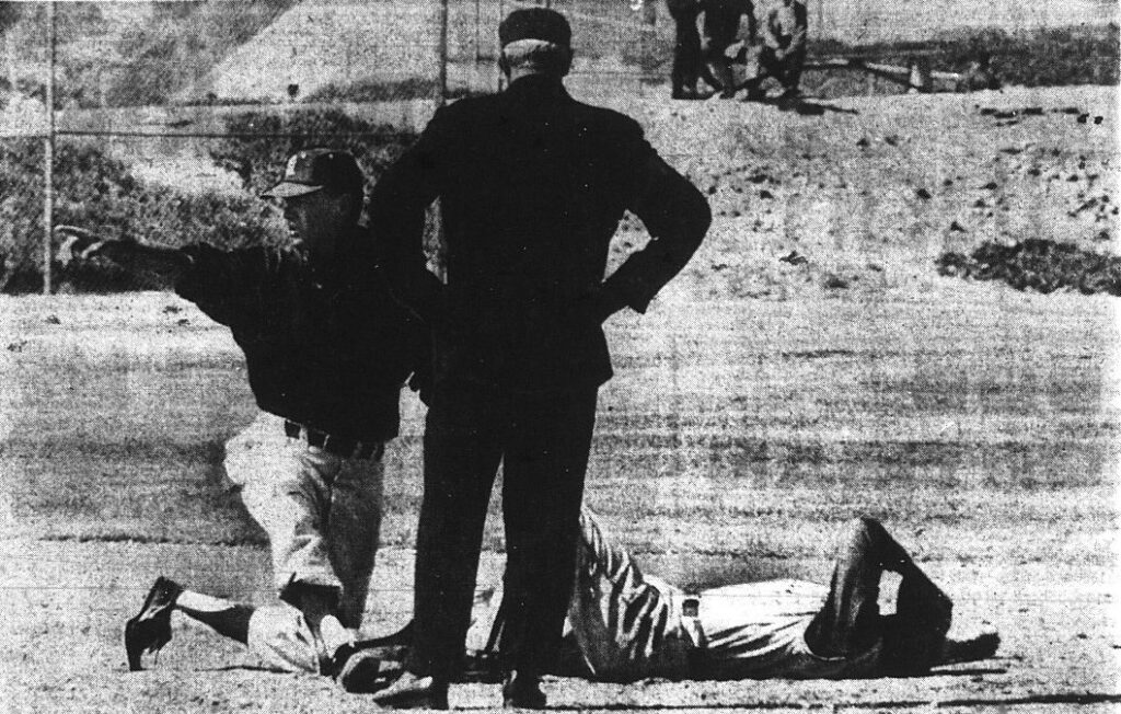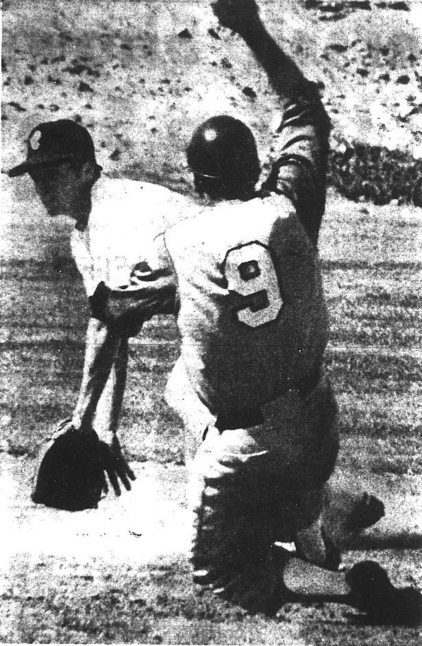 With runners on first and second and none out in the bottom of the seventh inning, San Diego’s Ron Brown hit a low line drive, caught by Gabbard, who touched first base and raced to touch second, ending the game.