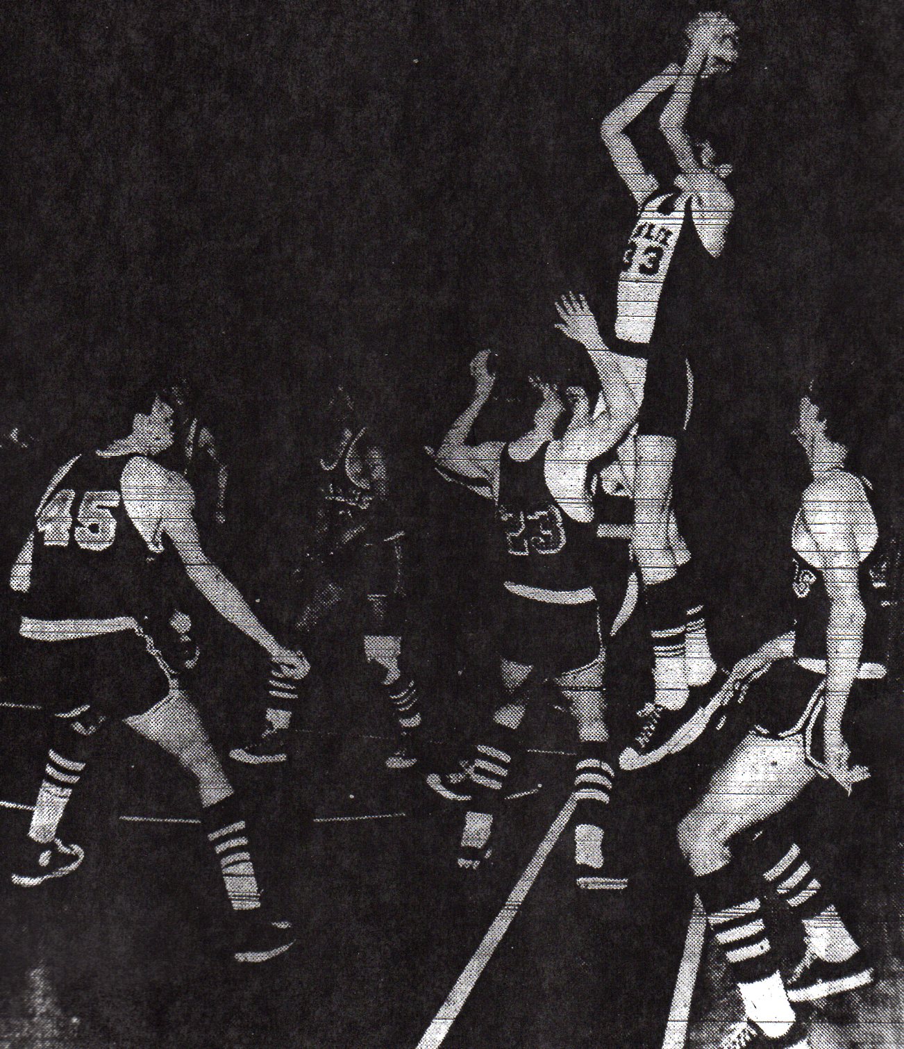 –Coach Wayne DeBate’s Cardinals jumped to a 16-2 lead in the first four minutes, shot 69 per cent from the field in the first half, and balanced the scoring among all five starters. Bob Martinez led with 18 points, followed by Tim Skelley, 17, Bill Conti, 16, Jack Neal, 15, and Gary Browning, 14.