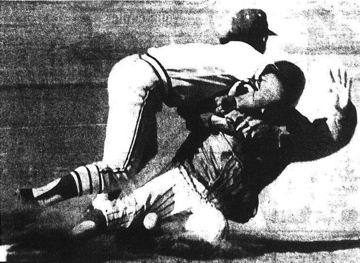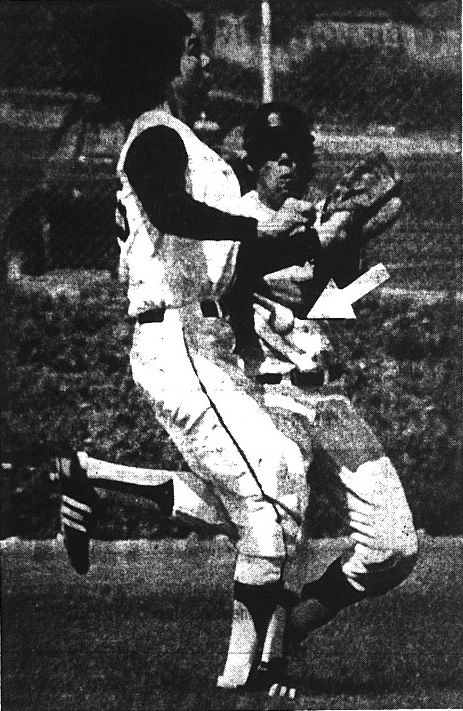 —The rule is that the base runner is automatically out, but the rule also stipulated that an umpire must see the ball strike the runner, wrote Evening Tribune reporter Bill Finley.