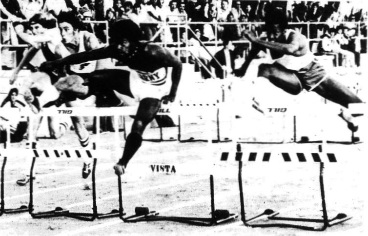 Willie Banks took the state lead with a 50-foot, 6 ½-inch triple jump, was second to teammate Kenny Brooks’ 22-10 long jump with a 22-6½ leap, and tied the hurdles record of :14.4 by Oceanside’s Mike Swaim in 1963.