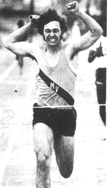 Steve Riggins’ quest for an 880-440 double was in place until Mike Cardwell of Mount Miguel stormed past the astonished Riggins in the last 100 yards to win the 880 in 1:55.7, with Riggins clocking 1:55.9.