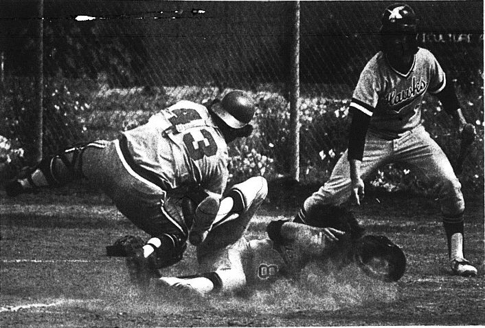 Mike Vint doubled, Gary Hanson walked, and Duane Antijuntti, Pat Jackson, Glenn Stemmer, Dale Hanson, and Brian Graham singled to close out the scoring. Gary Hanson had tied the game in the fourth inning with a two-run, 380-foot home run.