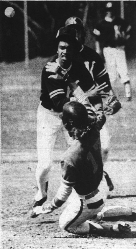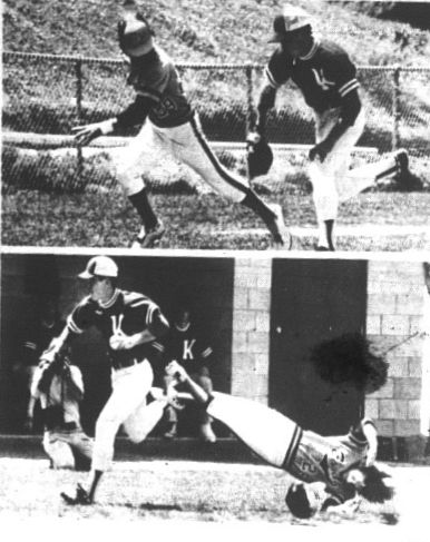 The Knights’ Bob Schmautz singled in runners from second and third and kept running after the throw to the plate got past the Falcons’ catcher. Schmautz then drew a wild throw sliding into third base and scored, giving San Marcos a 3-1 lead.