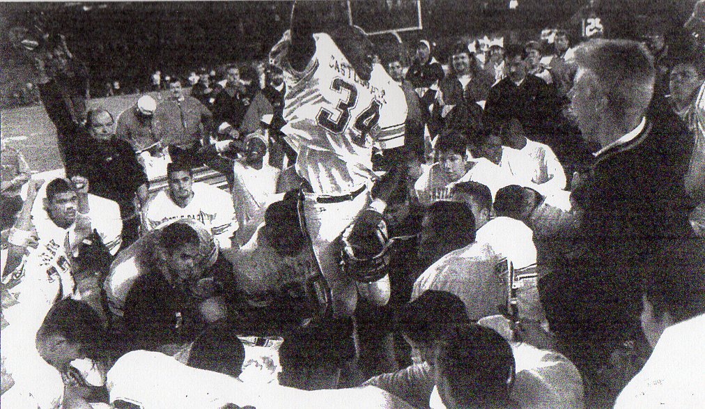 La Jolla’s winning streak was at 21 before a 21-16 loss to Lincoln, which had recovered from a 60-0 loss to Morse four weeks earlier…future San Diego State and San Diego Chargers coach Don Coryell was head coach at Honolulu Farrington in 1952 and an assistant at Punahou in 1951…Sweetwater listed Malia Fanua, a 6-foot-1, 300-pound, freshman as a starting defensive lineman…Scripps Ranch linebacker Gary Johnson is son of the former Charger known as “Big Hands”…Tom Barnett, 50-46-2, as Kearny head coach from 1977, returned this season, succeeding Willie Matson…Las Vegas Cimarron Memorial’s Chester Lanczewski hammered a 45-yard field with 10 seconds remaining to send visiting Sweetwater home with a 16-13 loss…the Red Devils beat Las Vegas Chaparral, 7-6, the week before…Corona Christian and Salton City West Shores, members of the Southern Section, competed in the Citrus League, an 8-man circuit that also included Borrego Springs and Midway Baptist…Carlsbad improved from 2-8 to 8-2-1 under first-year head coach Bob McAllister, a former assistant at Vista…