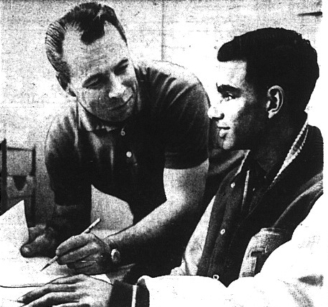 Explanation: Coach Bernie Flaherty was waiting for Chris Johnson, Brent Strom, Clarence Calvin, Alex Dantzler, and John Meiers, still involved in the Cavers’ basketball team pursuit of a San Diego Section championship.