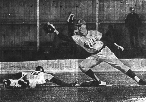 Paul Ehrich, who had eliminated the Cavers in the 1964 playoffs, retired two batters in the sixth after relieving Adamson, but the Cavers got go him in the top of the seventh. Doug Hunt hit a leadoff single, moved up on a ground out by Clarence Calvin and fly ball out by John Meiers, and came home on Dennis Maley’s single.
