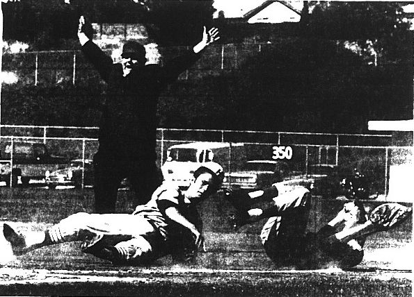 Hoover’s Dale Roland struck out on a wild pitch, allowing an advance to third by Singleton, who scored the winning run on John Helfrick’s single between third base and shortstop.