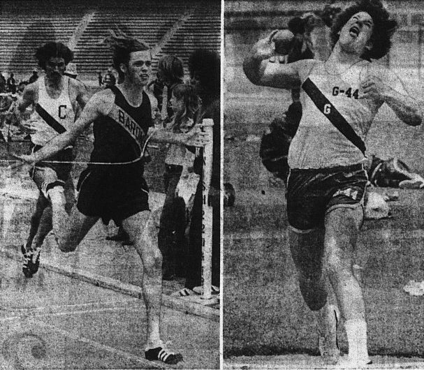 Greg Baer went 60-8 ½ and led a flock of shot putters that included El Cajon Valley’s Curt Hampton (59-9 ¾) and Jerry Barrows (57-11 ½), and Fahl (55-1/4) and Ehman (53-0), Baer’s Grossmont teammates.
