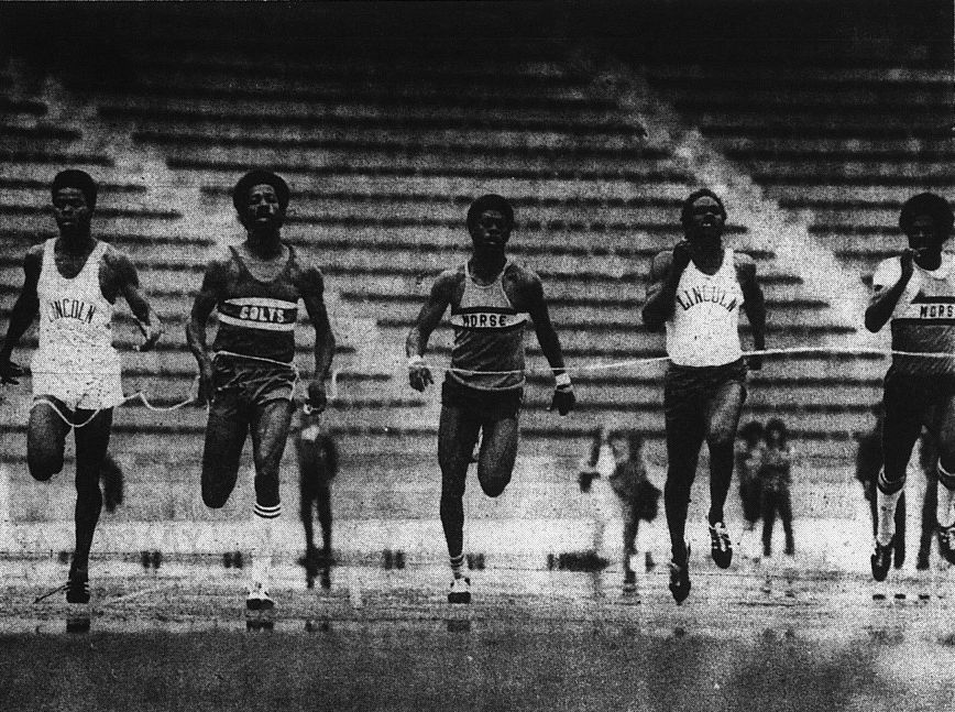 With Wally Henry leading off, Lincoln also won the 440 relay in :41.8 and Henry won the 180 low hurdles in :19.1.