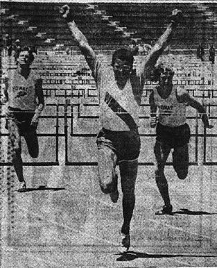 Wally Henry of Lincoln won his heats, :14.6 in the 120-yard high hurdles, and :20.5 in the 180 lows.