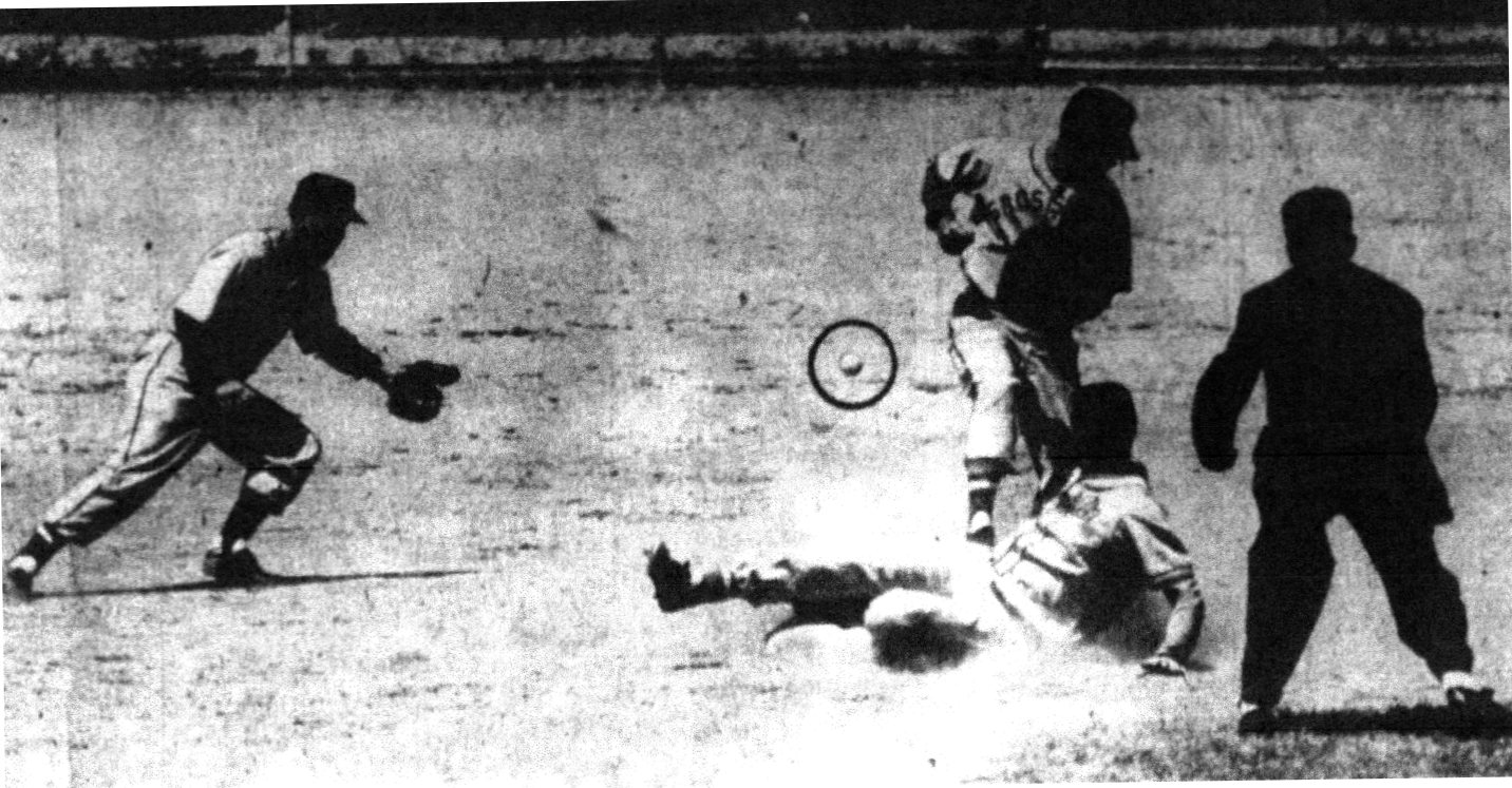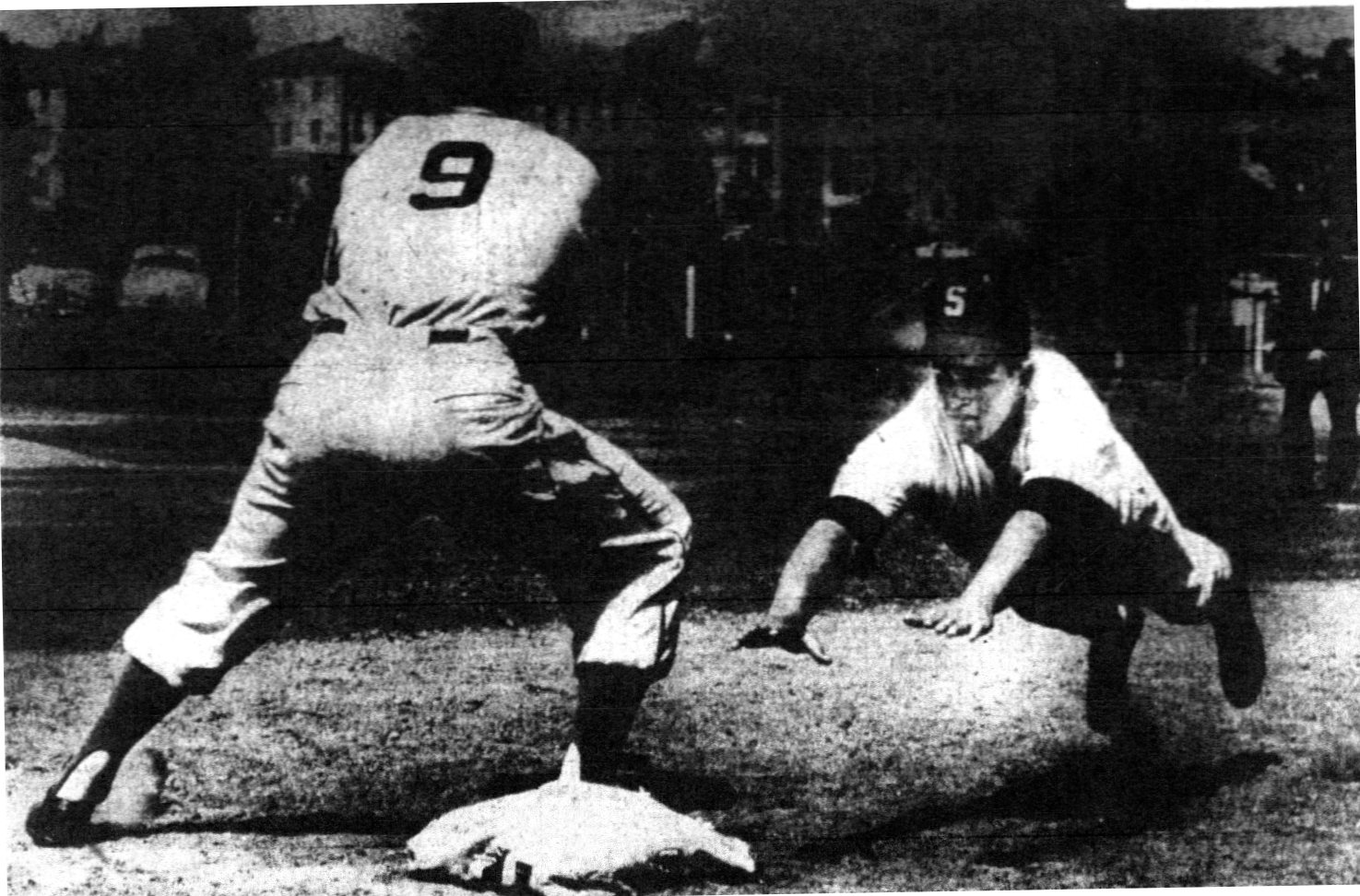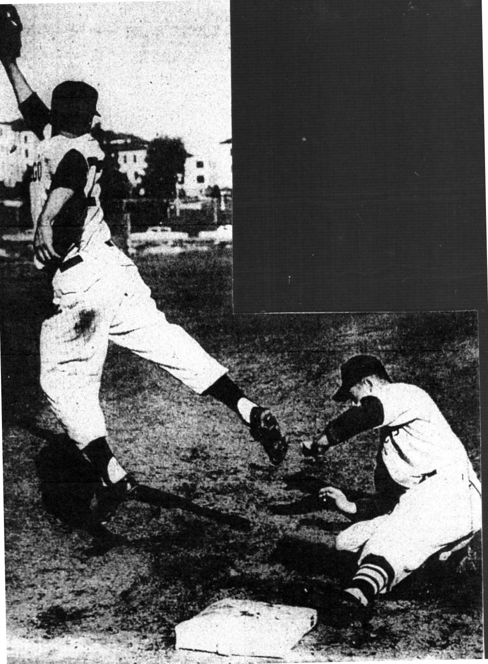The rally include a bunt hit, fielder’s choice, sacrifice bunt, catcher’s error for one run, a sacrifice fly for another run, a base on balls, and Joe Dini’s double, which scored John Harmon.