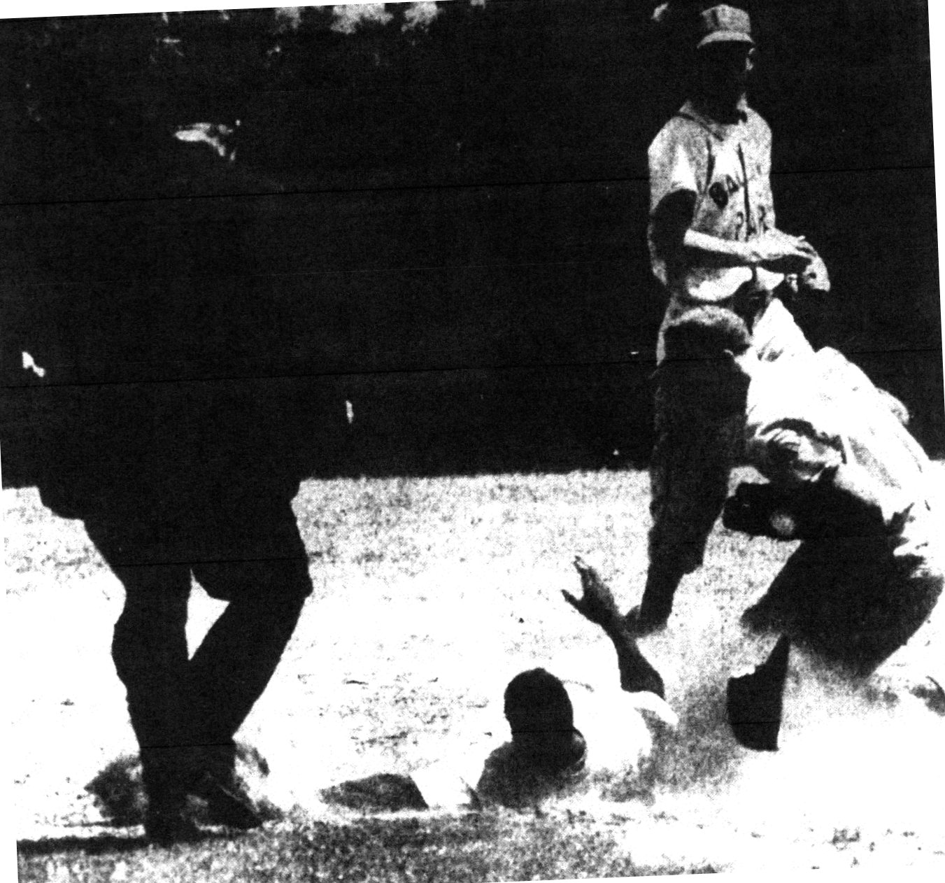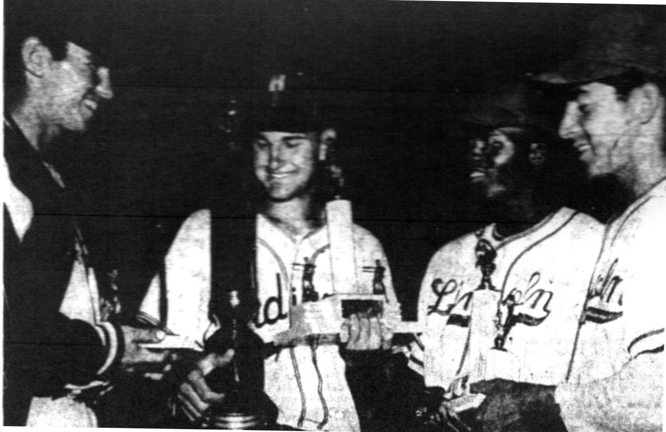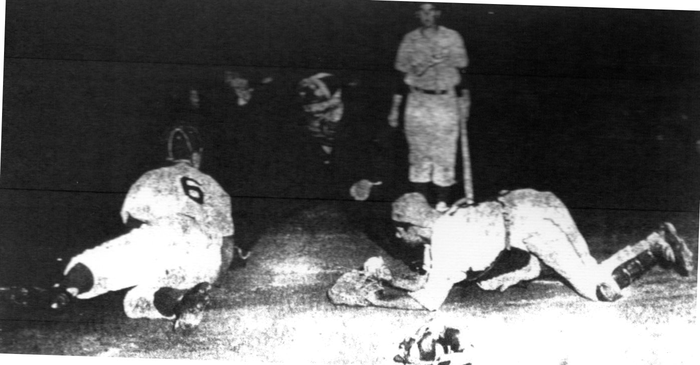 The rally include a bunt hit, fielder’s choice, sacrifice bunt, catcher’s error for one run, a sacrifice fly for another run, a base on balls, and Joe Dini’s double, which scored John Harmon.