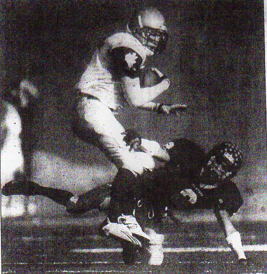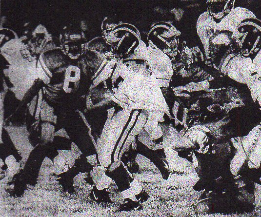 Quarterback Rick Coppack completed 9 of 17 passes for 258 yards. Coppack threw for two touchdowns in the last 90 seconds of the first half.